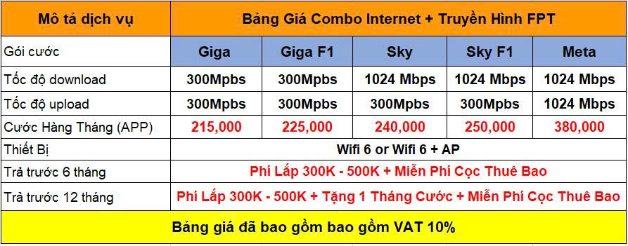 Bảng Giá Combo Internet + Truyền Hình Ngoại Hạng Anh FPT Play